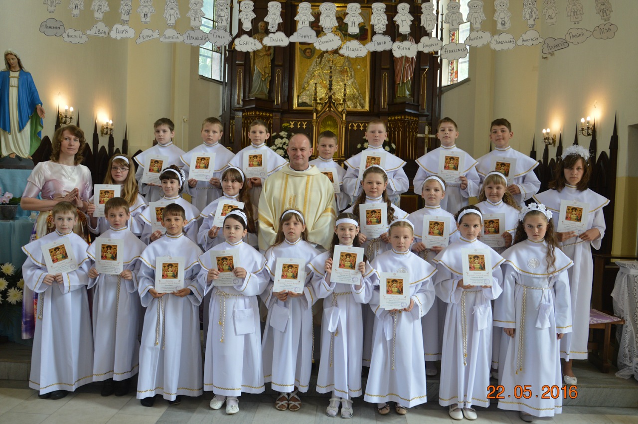 Сёння ў нарачанскай парафіі адбылася ўрачыстасць Першай Святой Камуніі. 23 хлопчыкі і дзяўчынкі ўпершыню прынялі Езуса ў сваё сэрца і запрасілі Яго застацца з імі назаўсёды.
